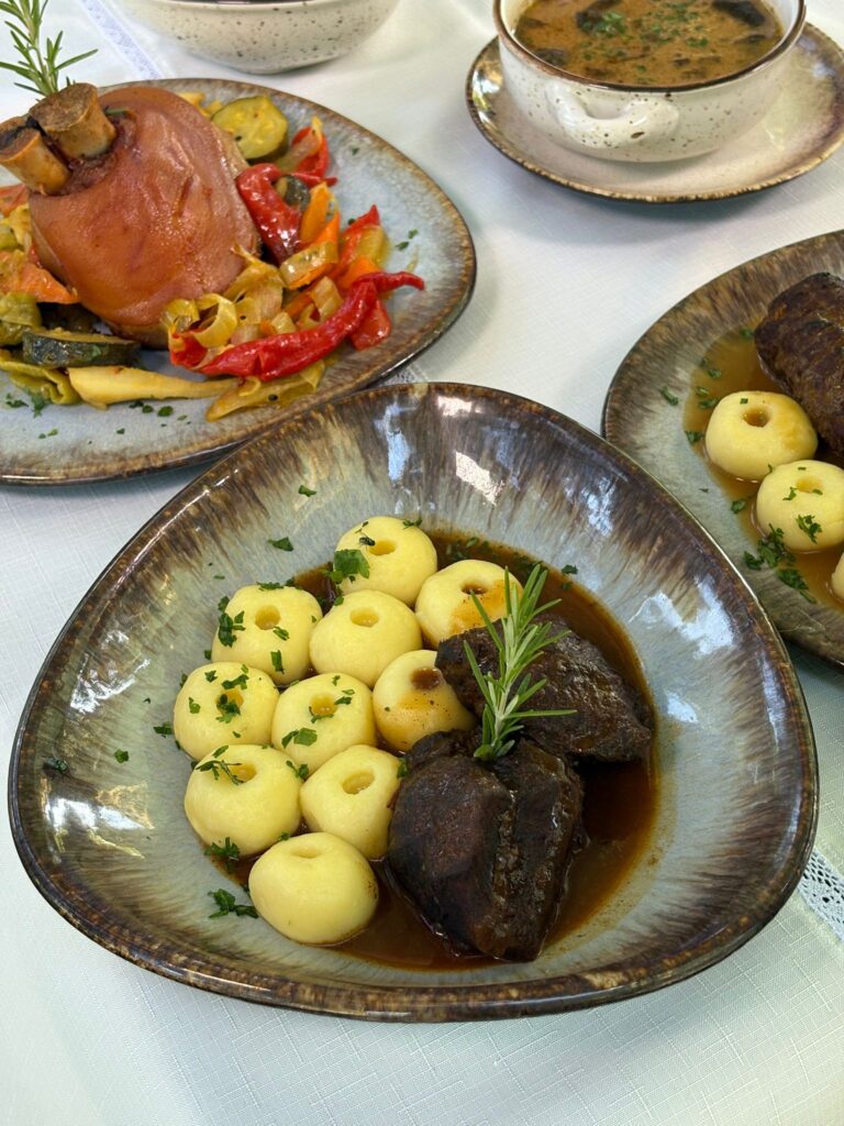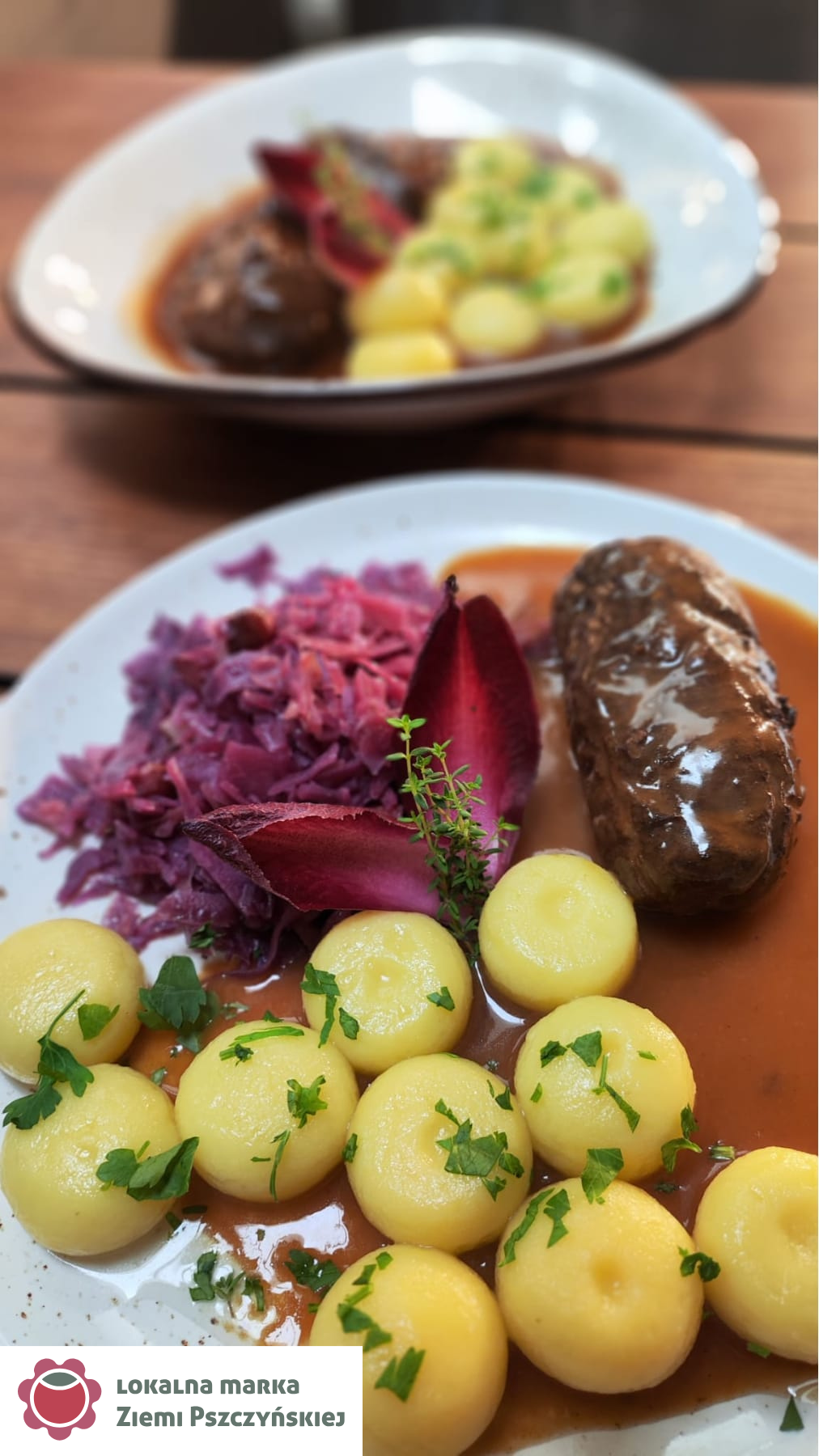 Rolada śląska z kluskami i modrą kapustą